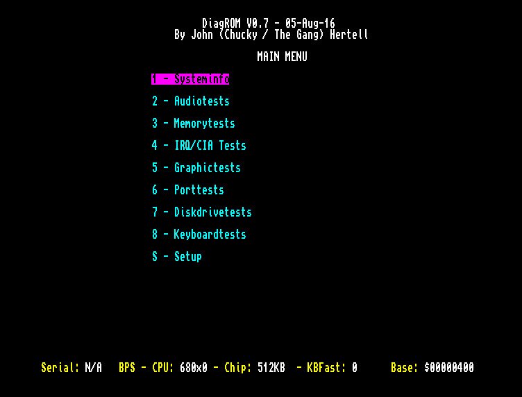 The Amiga Diag Rom is used so I can run tests and diagnose any faults that may occur over time.